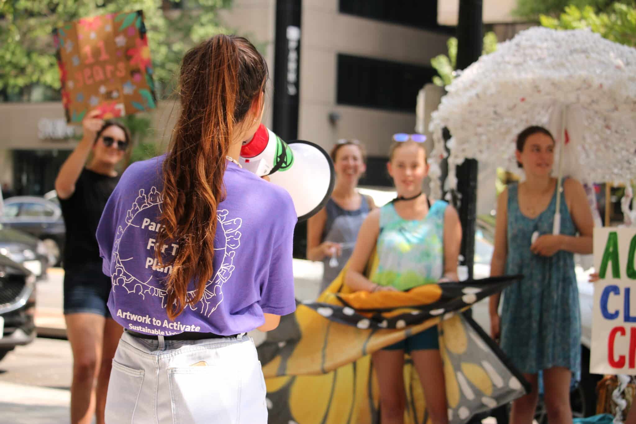 “We’re here today because we believe in the power of society to change,” said Sophia Geiger, 16, member of the youth climate strike movement Fridays for Future. “We should be able to live in an environment where we don’t need to use plastics. There are alternatives and we want to see those alternatives in our society.”